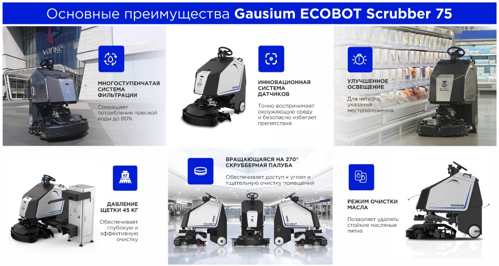 ECOBOT Scrubber 75 — это решение, которое позволит вашему бизнесу повысить эффективность уборки, сократить эксплуатационные расходы и обеспечить высочайшее качество чистоты на больших площадях.